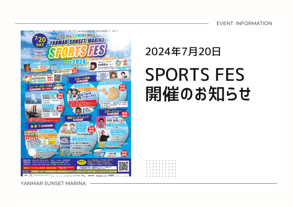 2024年7月20日㈯ SPORTS FES開催のお知らせ