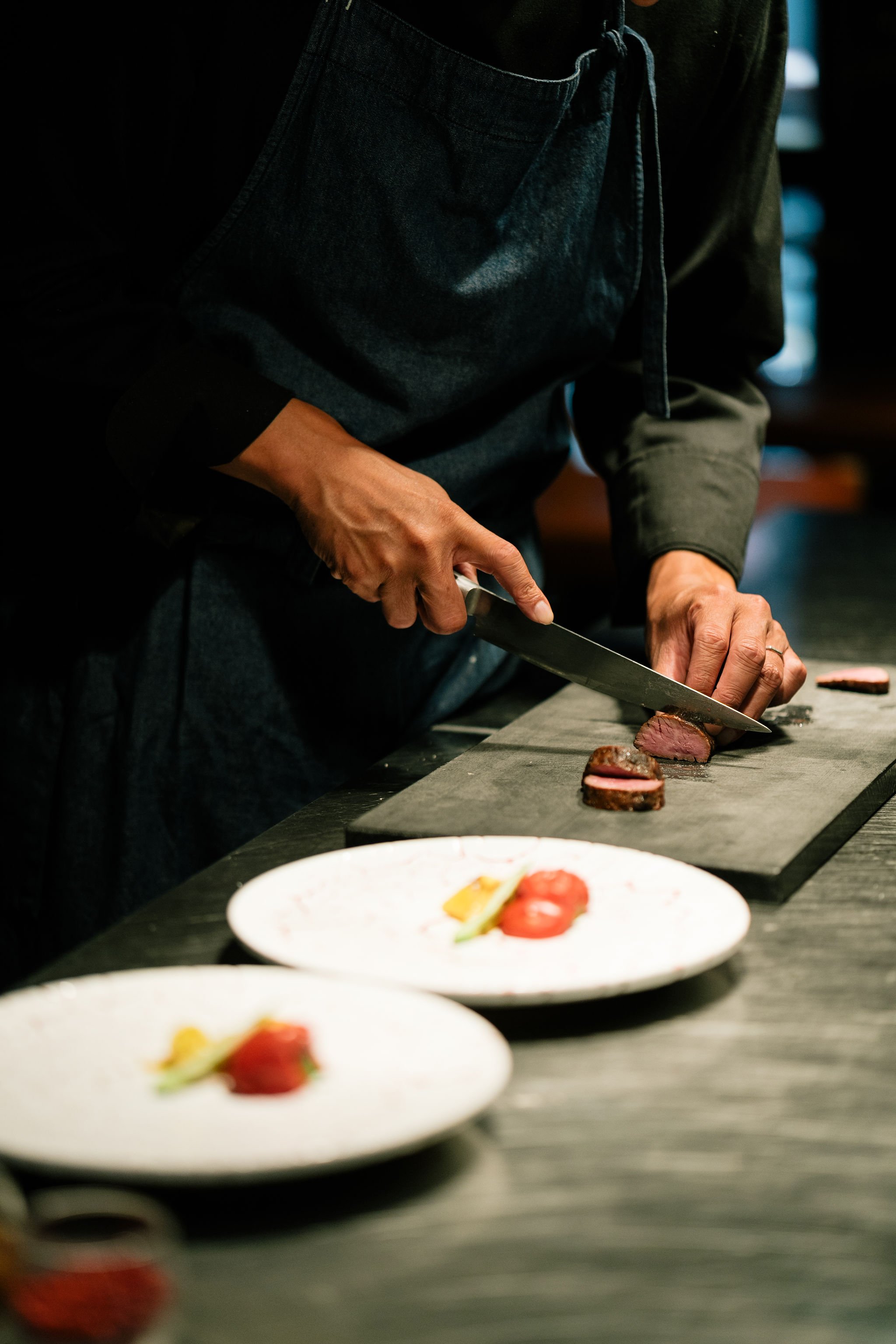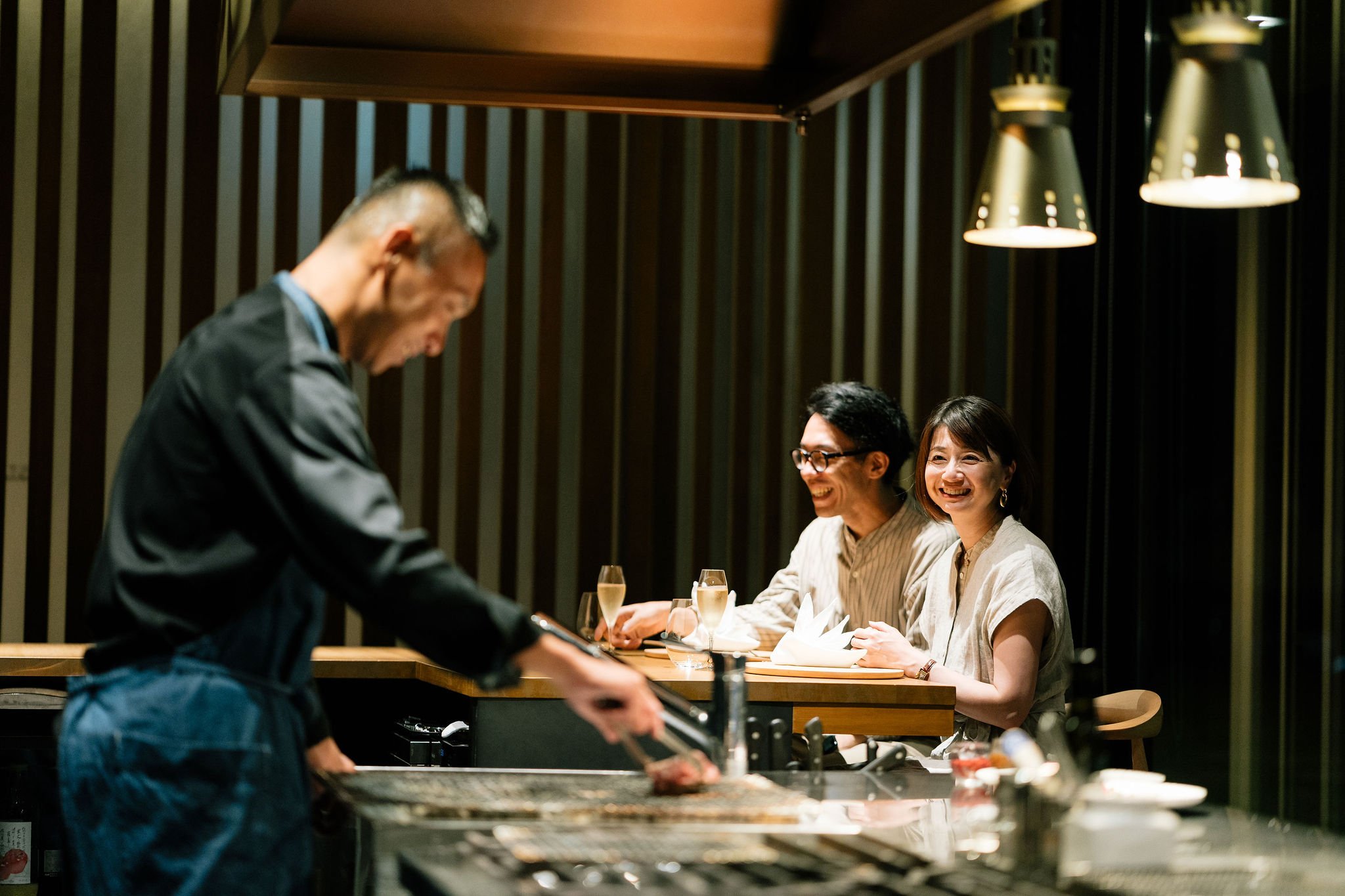 目の前でシェフが仕上げるオープンキッチンスタイルになります。