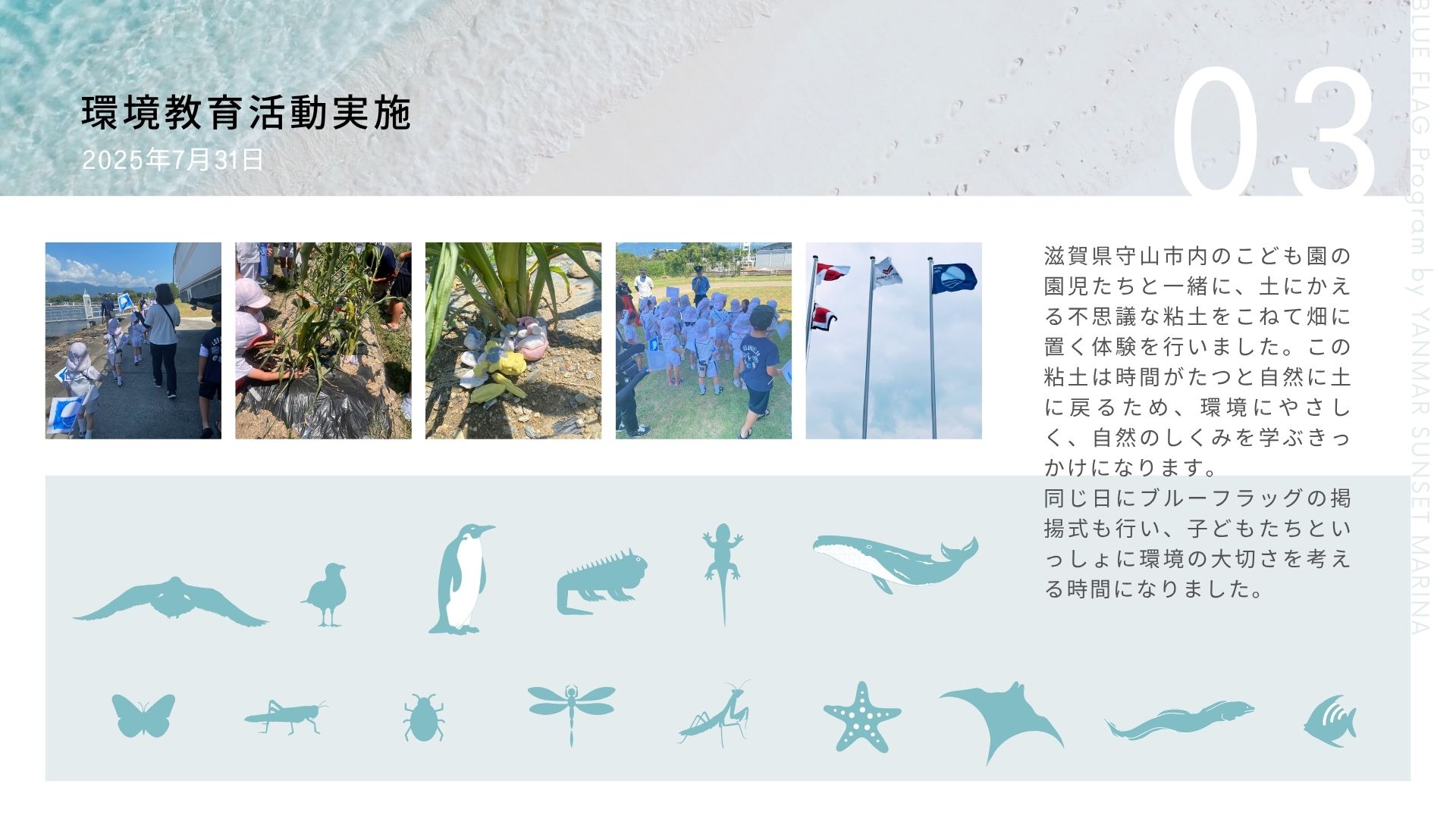 - 環境教育活動実施報告(ブルーフラッグ掲揚式、土に返る粘土学習)