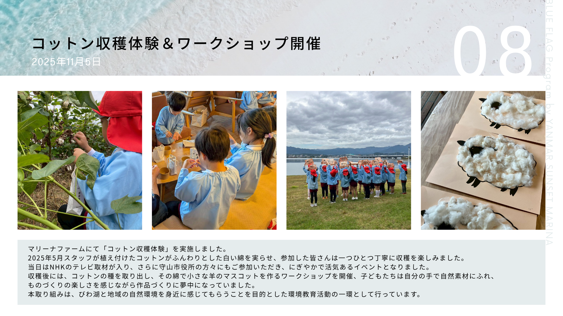 ヤンマーサンセットマリーナは、2025年4月国内の湖では初の取得となる国際環境認証「ブルーフラッグ」を取得いたしました。